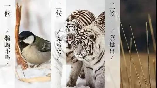 鶡鴠,就是寒号鸟,也作寒号虫。天气寒冷,寒号鸟也不再鸣叫了;此时是阴气最盛时期,所谓盛极而衰,阳气已有所萌动,老虎开始有求偶行为;“荔挺”为兰草的一种,感到阳气的萌动而抽出新芽。